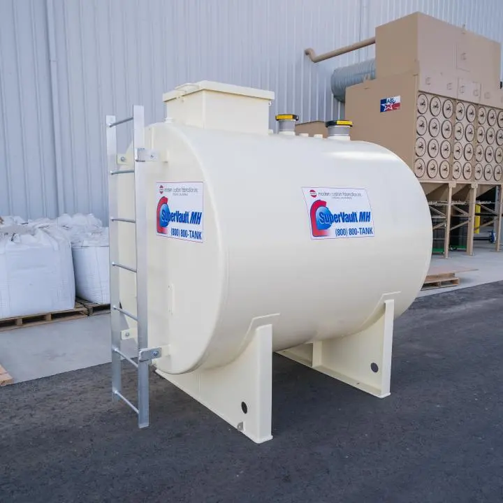 SuperVault™ MH = Multi-Hazard, Fire Rated Protected Secondary Containment Aboveground Tank with 4 hour fire exposure, hose stream resistant, projectile penetration tested, heavy vehicle impact tested. This product has been evaluated for re-use after fire or heavy vehicle impact. This tank complies with the requirements of SwRI Test Procedure 95-03, 93-01, UFC 79-7, UL-2085, interstitial Communication Test, and is a recognized listed product by Southwest Research Institute, San Antonio, Texas.